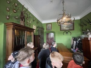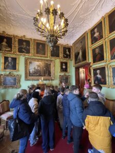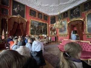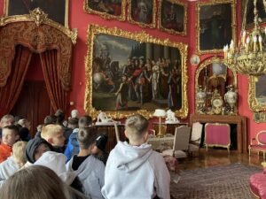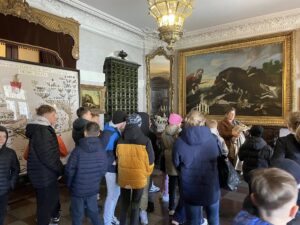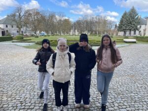 Pierwszym punktem była wizyta w Muzeum Zamoyskich w Kozłówce, gdzie uczniowie oraz nasi zagraniczni goście mieli okazję zobaczyć piękne wnętrza pałacowe oraz poznać historię jednego z najważniejszych rodów arystokratycznych w Polsce. Dzięki ciekawie opowiadającym przewodnikom, młodzież lepiej zrozumiała kontekst historyczny i doceniła bogactwo zgromadzonych zbiorów.