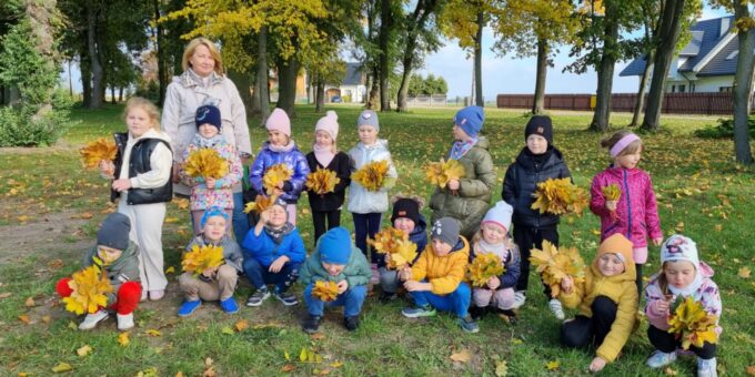 Dzieci rozpoznawały rodzaje drzew po liściach i owocach. Tworzyły piękne bukiety z kolorowych liści, zbierały kasztany i żołędzie.